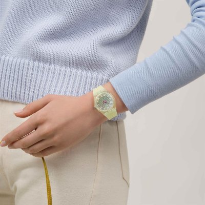 Este relógio Swatch tem uma caixa de Plástico de origem biológica com um diâmetro de 34 mm e está equipado com uma bracelete de borracha. A caixa possui um movimento ETA e o relógio tem um vidro Acrílico.