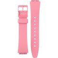 Esta bracelete de relógio Swatch é feita de plástico de origem biológica e está fixada ao relógio através de pinos em aço. A bracelete tem uma largura de 21 mm e fecha através de fecho. A bracelete não tem uma montagem a direito, o que significa que esta bracelete só é adequada para os relógios listados abaixo.
