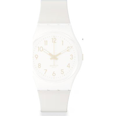 Esta bracelete de relógio Swatch é feita de silicone e está fixada ao relógio através de pinos em aço. A bracelete tem uma largura de 17 mm e fecha através de fecho. A bracelete não tem uma montagem a direito, o que significa que esta bracelete só é adequada para os relógios listados abaixo.
