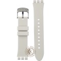 Esta bracelete de relógio Swatch é feita de silicone e está fixada ao relógio através de pinos em aço. A bracelete tem uma largura de 19.7 mm e fecha através de fecho. A bracelete não tem uma montagem a direito, o que significa que esta bracelete só é adequada para os relógios listados abaixo.