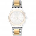 Esta bracelete de relógio Swatch é feita de aço inoxidável e está fixada ao relógio através de pinos em aço. A bracelete tem uma largura de 19.7 mm e fecha através de fivela dobrável com segurança. A bracelete não tem uma montagem a direito, o que significa que esta bracelete só é adequada para os relógios listados abaixo.
