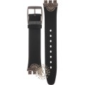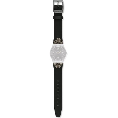 Esta bracelete de relógio Swatch é feita de têxtil/Couro e está fixada ao relógio através de pinos em aço. A bracelete tem uma largura de 17 mm e fecha através de fecho. A bracelete não tem uma montagem a direito, o que significa que esta bracelete só é adequada para os relógios listados abaixo.