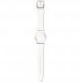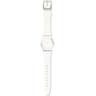 Esta bracelete de relógio Swatch é feita de silicone e está fixada ao relógio através de pinos em aço. A bracelete tem uma largura de 17 mm e fecha através de fecho. A bracelete não tem uma montagem a direito, o que significa que esta bracelete só é adequada para os relógios listados abaixo.