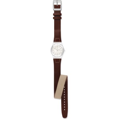 Esta bracelete de relógio Swatch é feita de couro e está fixada ao relógio através de pinos em aço. A bracelete tem uma largura de 17 mm e fecha através de fecho. A bracelete não tem uma montagem a direito, o que significa que esta bracelete só é adequada para os relógios listados abaixo.