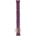 Esta bracelete de relógio Swatch é feita de alumínio e está fixada ao relógio através de pinos em aço. A bracelete tem uma largura de 17 mm e fecha através de fivela butterfly invisível. A bracelete não tem uma montagem a direito, o que significa que esta bracelete só é adequada para os relógios listados abaixo.