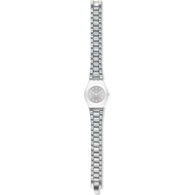 Esta bracelete de relógio Swatch é feita de aço inoxidável e está fixada ao relógio através de pinos em aço. A bracelete tem uma largura de 12 mm e fecha através de fivela joalheria. A bracelete não tem uma montagem a direito, o que significa que esta bracelete só é adequada para os relógios listados abaixo.