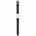 Esta bracelete de relógio Swatch é feita de couro e está fixada ao relógio através de pinos em aço. A bracelete tem uma largura de 12 mm e fecha através de fecho. A bracelete não tem uma montagem a direito, o que significa que esta bracelete só é adequada para os relógios listados abaixo.