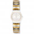 Esta bracelete de relógio Swatch é feita de aço inoxidável e está fixada ao relógio através de pinos em aço. A bracelete tem uma largura de 12 mm. A bracelete não tem uma montagem a direito, o que significa que esta bracelete só é adequada para os relógios listados abaixo.