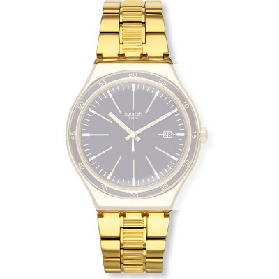 Esta bracelete de relógio Swatch é feita de aço inoxidável e está fixada ao relógio através de pinos em aço. A bracelete tem uma largura de 18.9 mm e fecha através de fivela dobrável com segurança. A bracelete não tem uma montagem a direito, o que significa que esta bracelete só é adequada para os relógios listados abaixo.