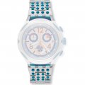 Esta bracelete de relógio Swatch é feita de alumínio e está fixada ao relógio através de pinos em aço. A bracelete tem uma largura de 19.7 mm e fecha através de fivela dobrável com botões de pressão e segurança. A bracelete não tem uma montagem a direito, o que significa que esta bracelete só é adequada para os relógios listados abaixo.