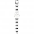 Esta bracelete de relógio Swatch é feita de silicone e está fixada ao relógio através de pinos em aço. A bracelete tem uma largura de 19.7 mm e fecha através de fecho. A bracelete não tem uma montagem a direito, o que significa que esta bracelete só é adequada para os relógios listados abaixo.