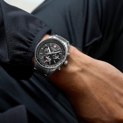 Este relógio Swiss Military Hanowa tem uma caixa de Inox com um diâmetro de 44 mm e está equipado com uma bracelete de Inox. A caixa possui um movimento Ronda e o relógio tem um vidro Safira.