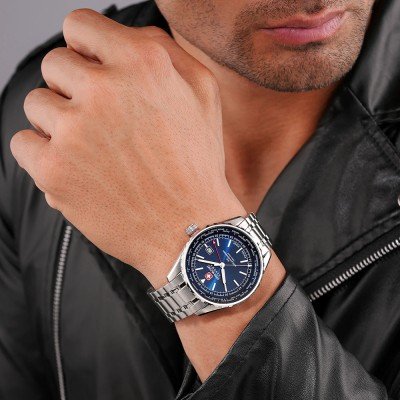 Este relógio Swiss Military Hanowa tem uma caixa de Inox com um diâmetro de 44 mm e está equipado com uma bracelete de Inox. A caixa possui um movimento Ronda e o relógio tem um vidro Safira.