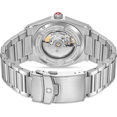 Este relógio Swiss Military Hanowa tem uma caixa de Inox com um diâmetro de 41 mm e está equipado com uma bracelete de Inox. A caixa possui um movimento Soprod e o relógio tem um vidro Safira.