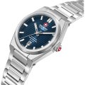 Este relógio Swiss Military Hanowa tem uma caixa de Inox com um diâmetro de 41 mm e está equipado com uma bracelete de Inox. A caixa possui um movimento Soprod e o relógio tem um vidro Safira.