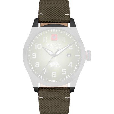 Esta bracelete de relógio Swiss Military Hanowa é feita de têxtil/Couro e está fixada ao relógio através de pinos de pressão. A bracelete tem uma largura de 22 mm e fecha através de fecho. A bracelete tem uma montagem a direito, o que significa que esta bracelete é adequada para todos os relógios Swiss Military Hanowa com montagem da bracelete a direito.