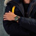 Este relógio Swiss Military Hanowa tem uma caixa de Inox com um diâmetro de 44 mm e está equipado com uma bracelete de couro. A caixa possui um movimento Ronda e o relógio tem um vidro Safira.