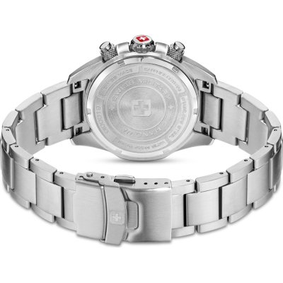 Este relógio Swiss Military Hanowa tem uma caixa de Inox com um diâmetro de 44 mm e está equipado com uma bracelete de Inox. A caixa possui um movimento Timex e o relógio tem um vidro Safira.