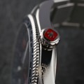 Este relógio Swiss Military Hanowa tem uma caixa de Inox com um diâmetro de 42 mm e está equipado com uma bracelete de Inox. A caixa possui um movimento Ronda e o relógio tem um vidro Safira.