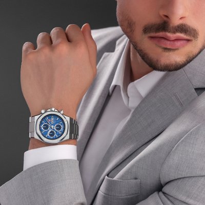Este relógio Swiss Military Hanowa tem uma caixa de Inox com um diâmetro de 43 mm e está equipado com uma bracelete de Inox. A caixa possui um movimento ETA e o relógio tem um vidro Safira.