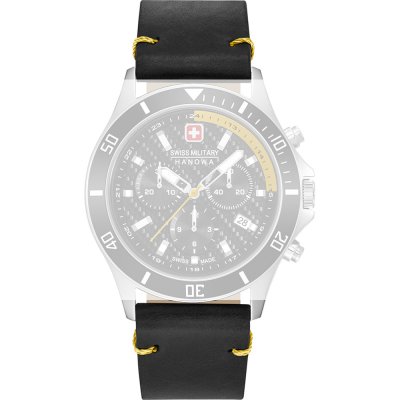 Esta bracelete de relógio Swiss Military Hanowa é feita de couro e está fixada ao relógio através de pinos de pressão. A bracelete tem uma largura de 22 mm e fecha através de fecho. A bracelete tem uma montagem a direito, o que significa que esta bracelete é adequada para todos os relógios Swiss Military Hanowa com montagem da bracelete a direito.
