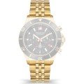 Esta bracelete de relógio Swiss Military Hanowa é feita de aço inoxidável e está fixada ao relógio através de pinos de pressão. A bracelete tem uma largura de 22 mm e fecha através de fivela dobrável com botões de pressão e segurança. A bracelete não tem uma montagem a direito, o que significa que esta bracelete só é adequada para os relógios listados abaixo.