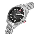Este relógio Swiss Military Hanowa tem uma caixa de Inox com um diâmetro de 42 mm e está equipado com uma bracelete de Inox. A caixa possui um movimento Ronda e o relógio tem um vidro Safira.