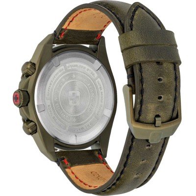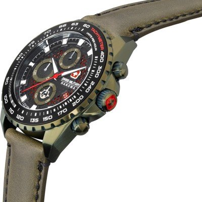 O relógio é estanque a 10ATM. Isto significa que o relógio é adaptado à natação. O relógio tem Swiss Military 3+2.