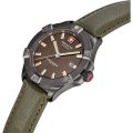 Este relógio Swiss Military Hanowa tem uma caixa de Inox com um diâmetro de 42 mm e está equipado com uma bracelete de couro. A caixa possui um movimento Ronda e o relógio tem um vidro Safira.