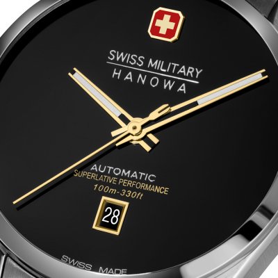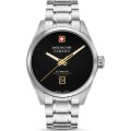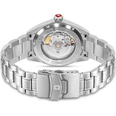 Este relógio Swiss Military Hanowa tem uma caixa de Inox com um diâmetro de 41 mm e está equipado com uma bracelete de Inox. A caixa possui um movimento Soprod e o relógio tem um vidro Safira.