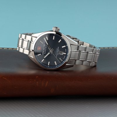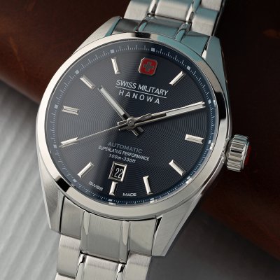 Este relógio Swiss Military Hanowa tem uma caixa de Inox com um diâmetro de 41 mm e está equipado com uma bracelete de Inox. A caixa possui um movimento Soprod e o relógio tem um vidro Safira.