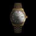 O relógio é estanque a 10ATM. Isto significa que o relógio é adaptado à natação. O relógio tem Swiss Military 3+2.
