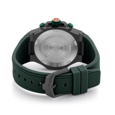 Este relógio Swiss Military Hanowa tem uma caixa de Inox com um diâmetro de 44 mm e está equipado com uma bracelete de borracha. A caixa possui um movimento Ronda e o relógio tem um vidro Safira.