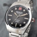 O relógio é estanque a 10ATM. Isto significa que o relógio é adaptado à natação. O relógio tem Swiss Military 3+2.