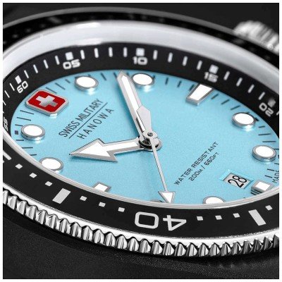 Este relógio Swiss Military Hanowa tem uma caixa de Plástico maré oceânica com um diâmetro de 45 mm e está equipado com uma bracelete de borracha. A caixa possui um movimento Ronda e o relógio tem um vidro Safira.