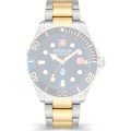 Esta bracelete de relógio Swiss Military Hanowa é feita de aço inoxidável e está fixada ao relógio através de pinos de pressão. A bracelete tem uma largura de 22 mm e fecha através de fivela dobrável com botões de pressão e segurança. A bracelete não tem uma montagem a direito, o que significa que esta bracelete só é adequada para os relógios listados abaixo.
