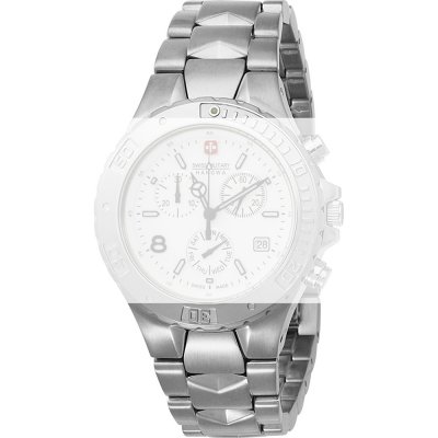 Esta bracelete de relógio Swiss Military Hanowa é feita de aço inoxidável e está fixada ao relógio através de pinos em aço. A bracelete tem uma largura de 22 mm e fecha através de fivela dobrável. A bracelete não tem uma montagem a direito, o que significa que esta bracelete só é adequada para os relógios listados abaixo.