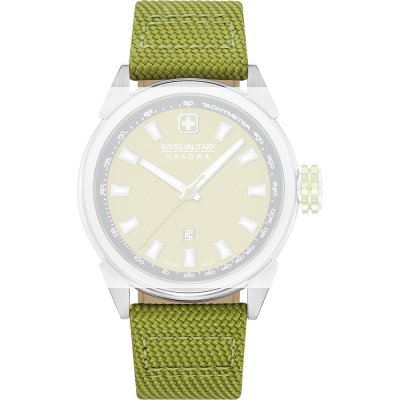 Esta bracelete de relógio Swiss Military Hanowa é feita de tecido e está fixada ao relógio através de pinos de pressão. A bracelete tem uma largura de 24 mm e fecha através de fecho. A bracelete tem uma montagem a direito, o que significa que esta bracelete é adequada para todos os relógios Swiss Military Hanowa com montagem da bracelete a direito.