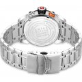 Este relógio Swiss Military Hanowa tem uma caixa de Inox com um diâmetro de 45 mm e está equipado com uma bracelete de Inox. A caixa possui um movimento Ronda e o relógio tem um vidro Safira.