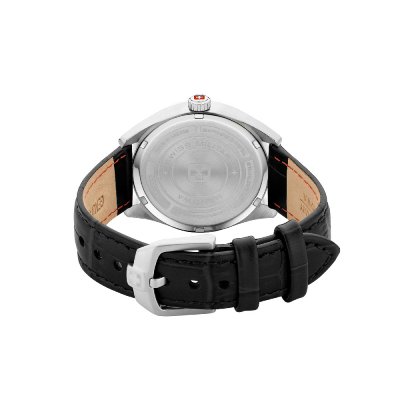 Este relógio Swiss Military Hanowa tem uma caixa de Inox com um diâmetro de 40 mm e está equipado com uma bracelete de couro. A caixa possui um movimento Ronda e o relógio tem um vidro Safira.