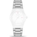 Esta bracelete de relógio Swiss Military Hanowa é feita de aço inoxidável e está fixada ao relógio através de pinos em aço. A bracelete tem uma largura de 19 mm e fecha através de fivela dobrável com botões de pressão e segurança. A bracelete não tem uma montagem a direito, o que significa que esta bracelete só é adequada para os relógios listados abaixo.