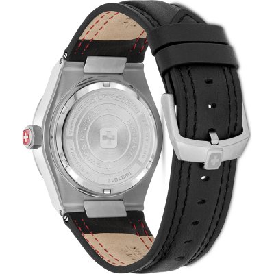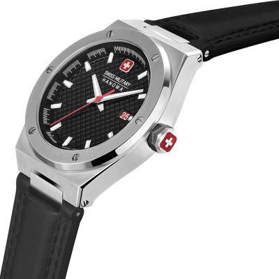 Este relógio Swiss Military Hanowa tem uma caixa de Inox com um diâmetro de 43 mm e está equipado com uma bracelete de couro. A caixa possui um movimento Ronda e o relógio tem um vidro Safira.