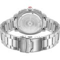 Este relógio Swiss Military Hanowa tem uma caixa de Inox com um diâmetro de 41 mm e está equipado com uma bracelete de Inox. A caixa possui um movimento Ronda e o relógio tem um vidro Safira.