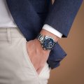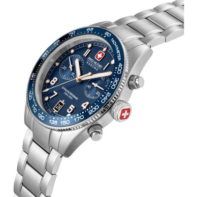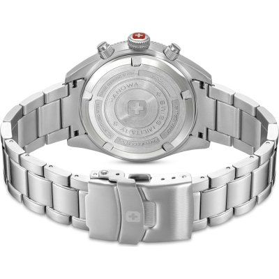 Este relógio Swiss Military Hanowa tem uma caixa de Inox com um diâmetro de 43 mm e está equipado com uma bracelete de Inox. A caixa possui um movimento Ronda e o relógio tem um vidro Safira.