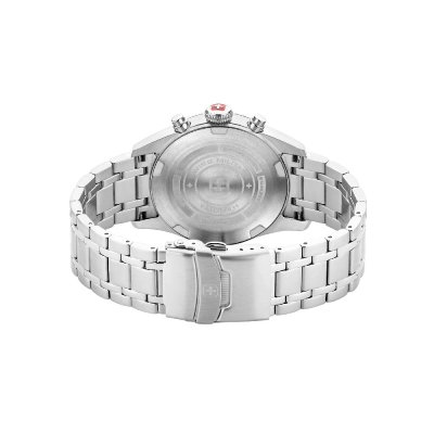 Este relógio Swiss Military Hanowa tem uma caixa de Inox com um diâmetro de 43 mm e está equipado com uma bracelete de Inox. A caixa possui um movimento Ronda e o relógio tem um vidro Safira.
