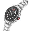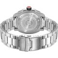 Este relógio Swiss Military Hanowa tem uma caixa de Inox com um diâmetro de 40 mm e está equipado com uma bracelete de Inox. A caixa possui um movimento Ronda e o relógio tem um vidro Safira.