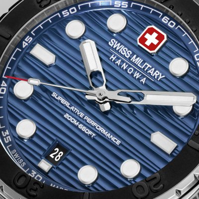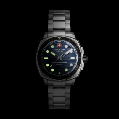 O relógio é estanque a 20ATM. Isto significa que o relógio é adequado para mergulho. O relógio tem Swiss Military 3+2.