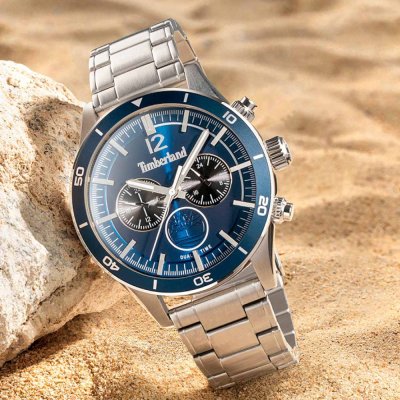 Este relógio Timberland tem uma caixa de Inox com um diâmetro de 46 mm e está equipado com uma bracelete de Inox. A caixa possui um movimento Seiko e o relógio tem um vidro Mineral.