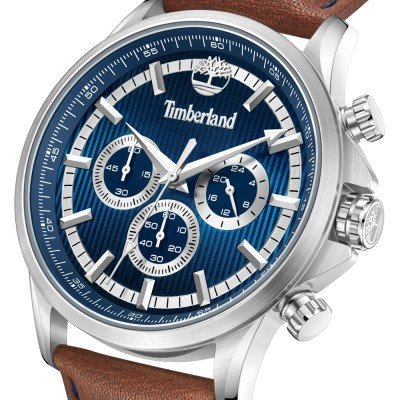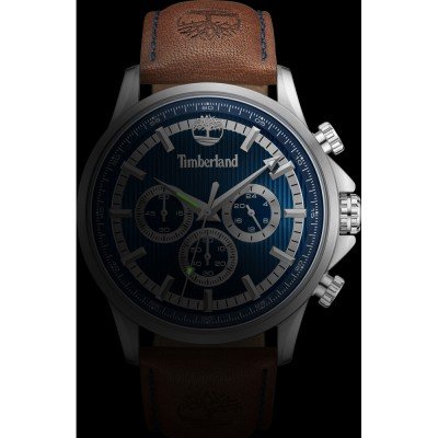 Este relógio Timberland tem uma caixa de Inox com um diâmetro de 45 mm e está equipado com uma bracelete de couro. A caixa possui um movimento Seiko e o relógio tem um vidro Mineral.