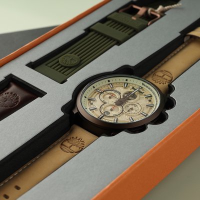 Este relógio Timberland tem uma caixa de Alumínio com um diâmetro de 46 mm e está equipado com uma bracelete de couro. A caixa possui um movimento Seiko Instruments Inc. e o relógio tem um vidro Mineral.
